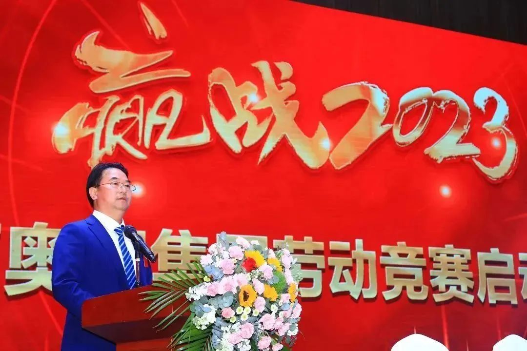 董事长肖治颉向片区项目负责人进行“劳动竞赛”授旗,并宣布2023年度陕西奥翔集团劳动竞赛正式启动。